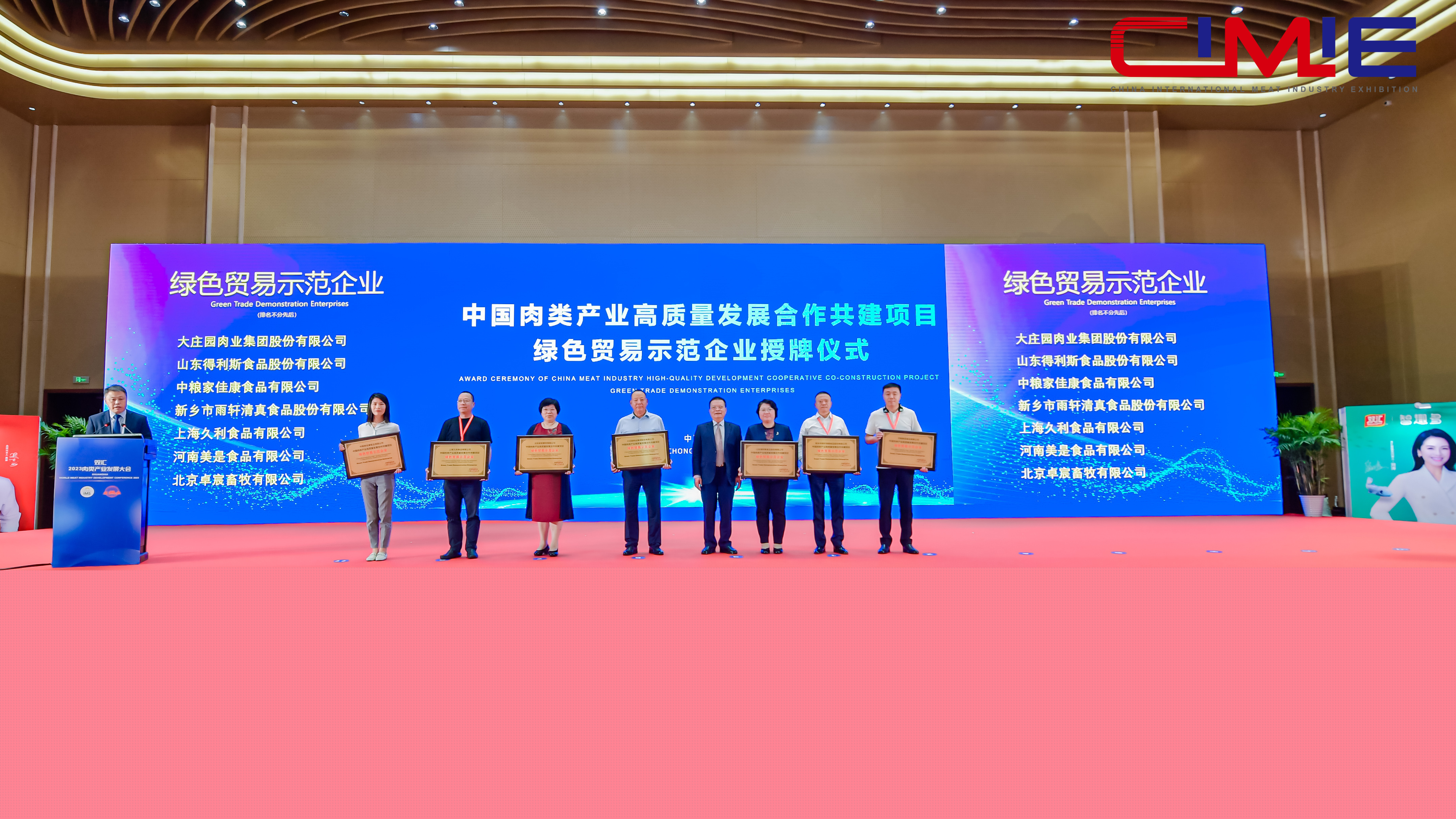 在隨后舉行的中國肉類產(chǎn)業(yè)高質(zhì)量發(fā)展合作共建項目——綠色貿(mào)易示范企業(yè)授牌儀式上,大莊園集團(tuán)與另外六家企業(yè)被授予“綠色貿(mào)易示范企業(yè)”,共同促進(jìn)肉類產(chǎn)業(yè)高質(zhì)量發(fā)展。